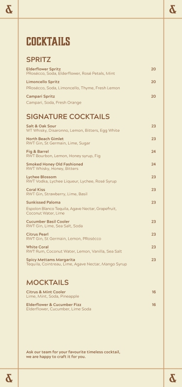 Salt & Oak offers a thoughtfully simple menu that suits the easygoing vibe of a neighbourhood café with a focus on breakfast, brunch, and casual lunch options. Expect comforting dishes that feel just right whether you’re stopping in for a morning coffee or settling in for a relaxed weekend brunch.